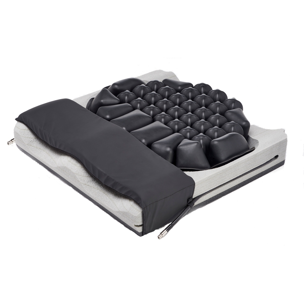 A Almofada Roho Hybrid Elite composta pela tecnologia de células de ar ROHO DRY FLOATATION® e pela base de espuma firme com contornos, o compartimento de ar promove a distribuição da pressão ao redor da pelve, garantindo proteção a pele e tecidos moles e promovendo a redistribuição da pressão em torno da pelve além de garantir estabilidade, conforto e bom posicionamento sentado. É a almofada ideal para pessoas que precisam de uma acomodação da assimetria pélvica e da extremidade inferior da coluna proporcionada por um assento anatômico, além de uma base mais estável para realizar as transferências, associando tudo isso aos cuidados com pele.